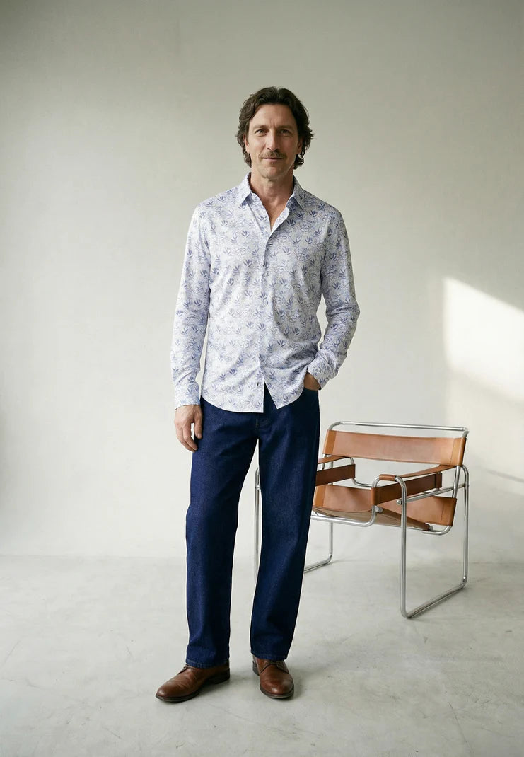 La chemise Beau-Fils s’inscrit dans une esthétique moderne et responsable. Elle associe un traitement anti-taches, une grande respirabilité et un entretien simplifié, grâce à sa matière issue de polyester recyclé.
